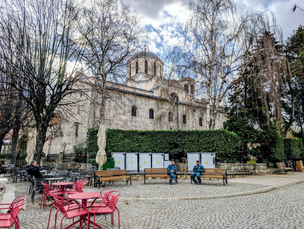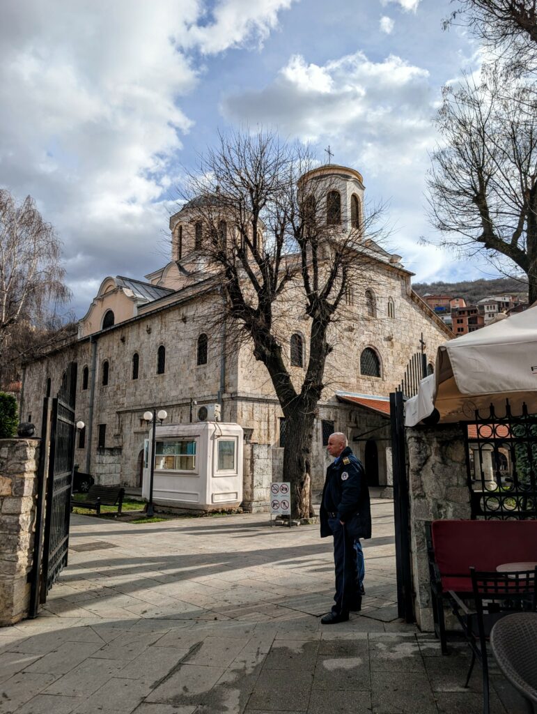 Nous visitons ensuite le Monastère de Gračanica, monastère orthodoxe serbe fondé par le roi de Serbie Stefan Milutin en 1321. Les murs intérieurs sont intégralement recouverts de fresques de scènes de la Bible et d’icônes orthodoxes. C’est très beau.