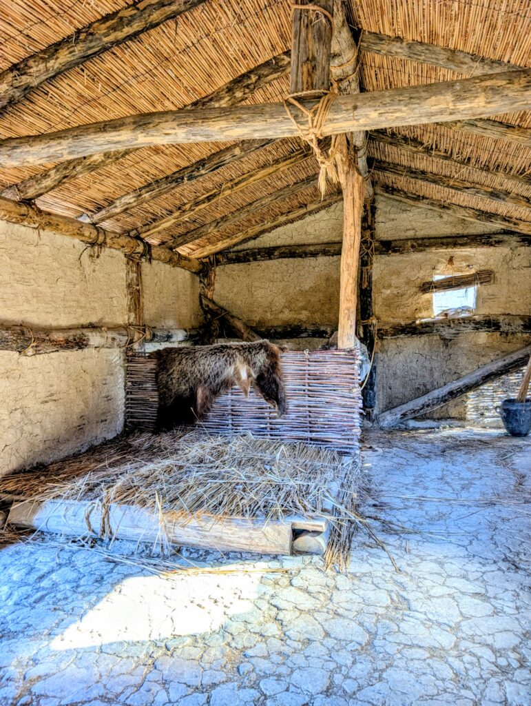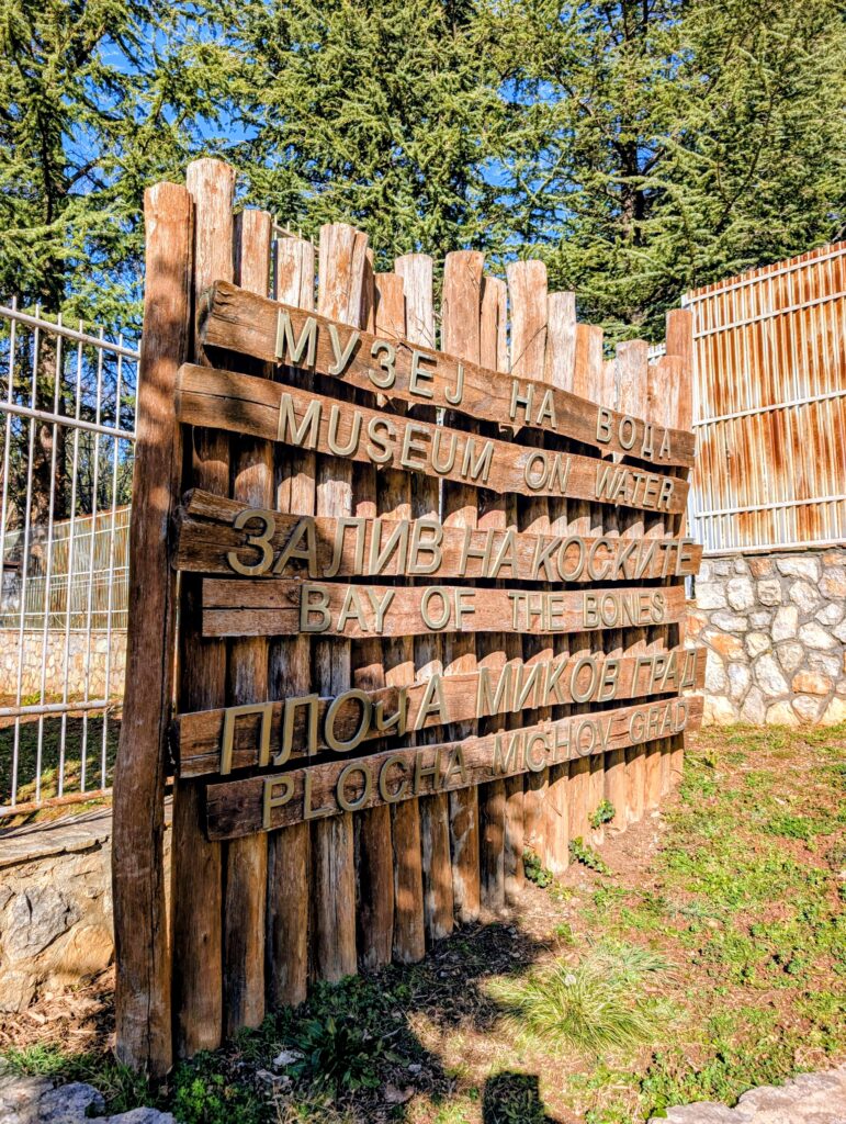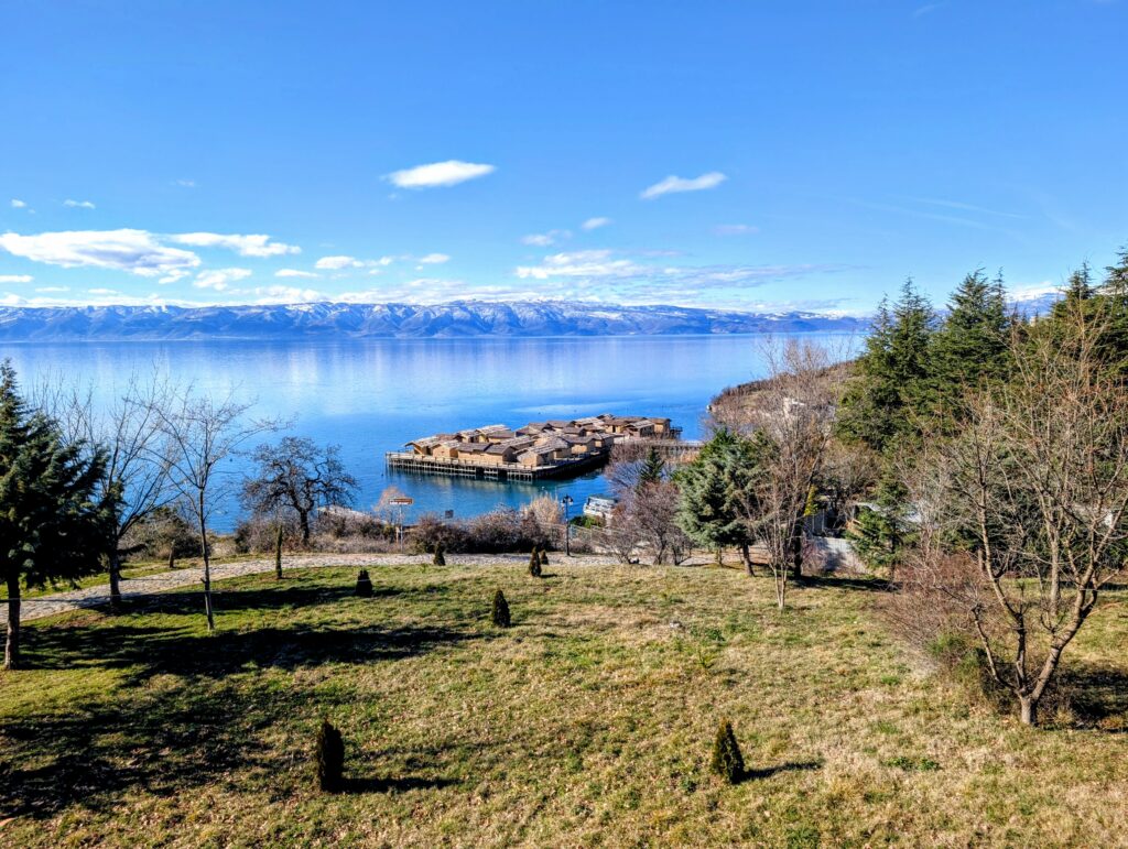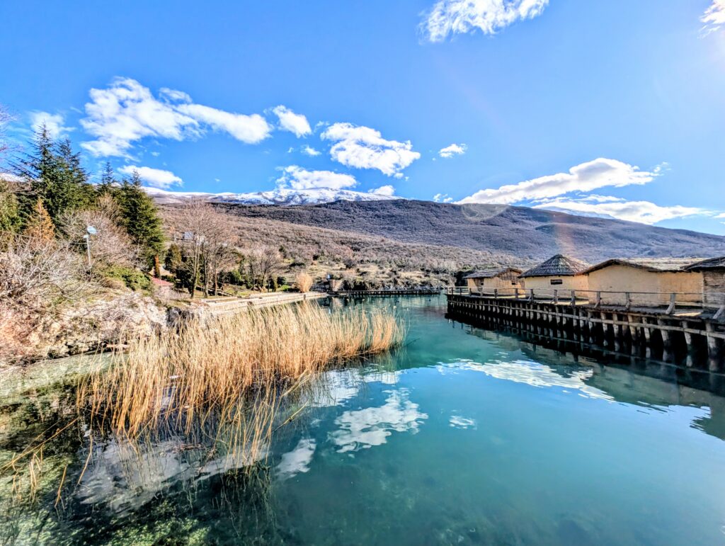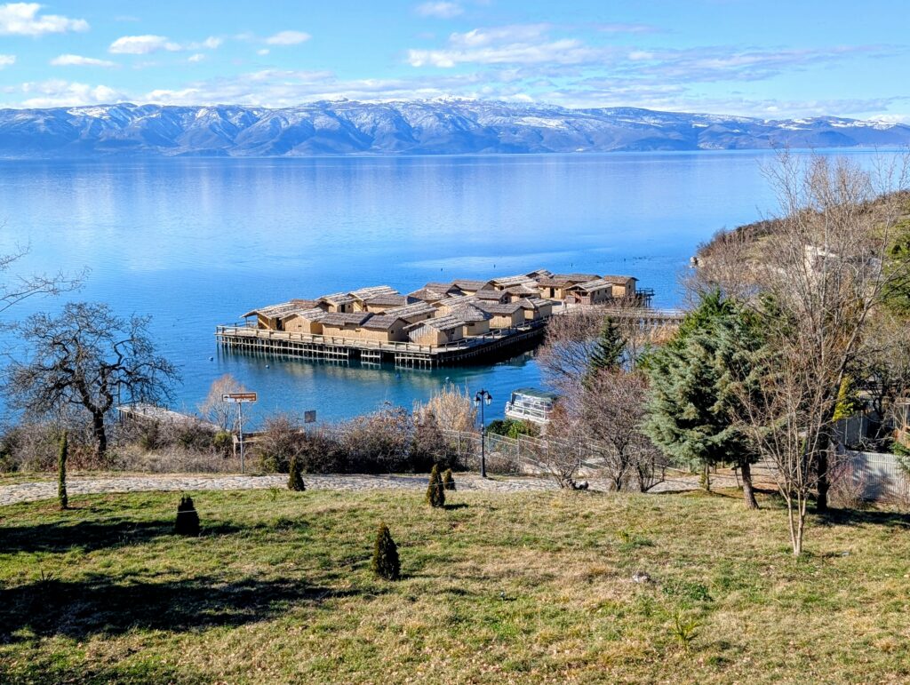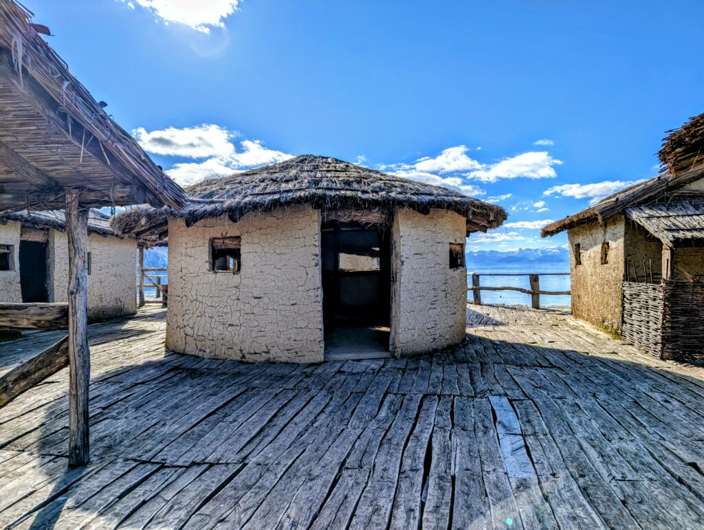 Jeudi 15 janvier, nous quittons notre petit camping et roulons une quinzaine de kilomètres jusqu’au musée de la Baie des ossements. Nichée sur les rives du lac d’Ohrid, la Baie des ossements est une véritable fenêtre sur le passé. Ce site archéologique exceptionnel reconstitue avec précision un village préhistorique sur pilotis. Cette reconstitution grandeur nature permet d’explorer l’habitat et les traditions des civilisations antiques qui peuplaient cette région des Balkans.