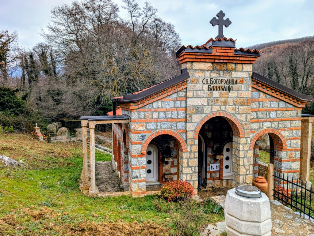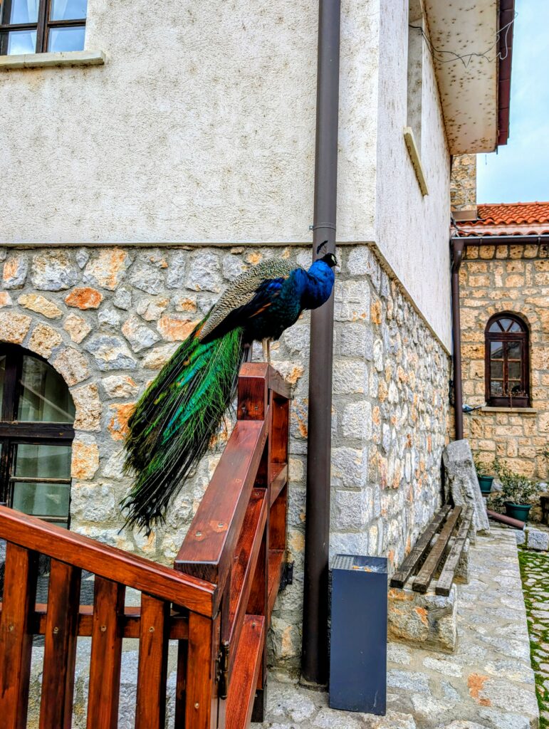 Vendredi 16 janvier, nous roulons jusqu’au Monastère Saint-Naum construit au 10e siècle au bord du lac d’Ohrid. Il s’agit d’un des lieux les plus touristiques de la Macédoine du Nord, grâce à son cadre naturel exceptionnel et à son architecture typiquement byzantine. A cette période de l’année, il y a plus de paons que de touristes.