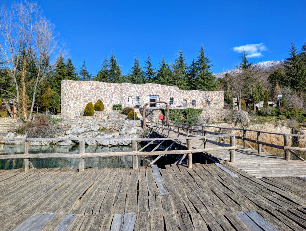 Jeudi 15 janvier, nous quittons notre petit camping et roulons une quinzaine de kilomètres jusqu’au musée de la Baie des ossements. Nichée sur les rives du lac d’Ohrid, la Baie des ossements est une véritable fenêtre sur le passé. Ce site archéologique exceptionnel reconstitue avec précision un village préhistorique sur pilotis. Cette reconstitution grandeur nature permet d’explorer l’habitat et les traditions des civilisations antiques qui peuplaient cette région des Balkans.