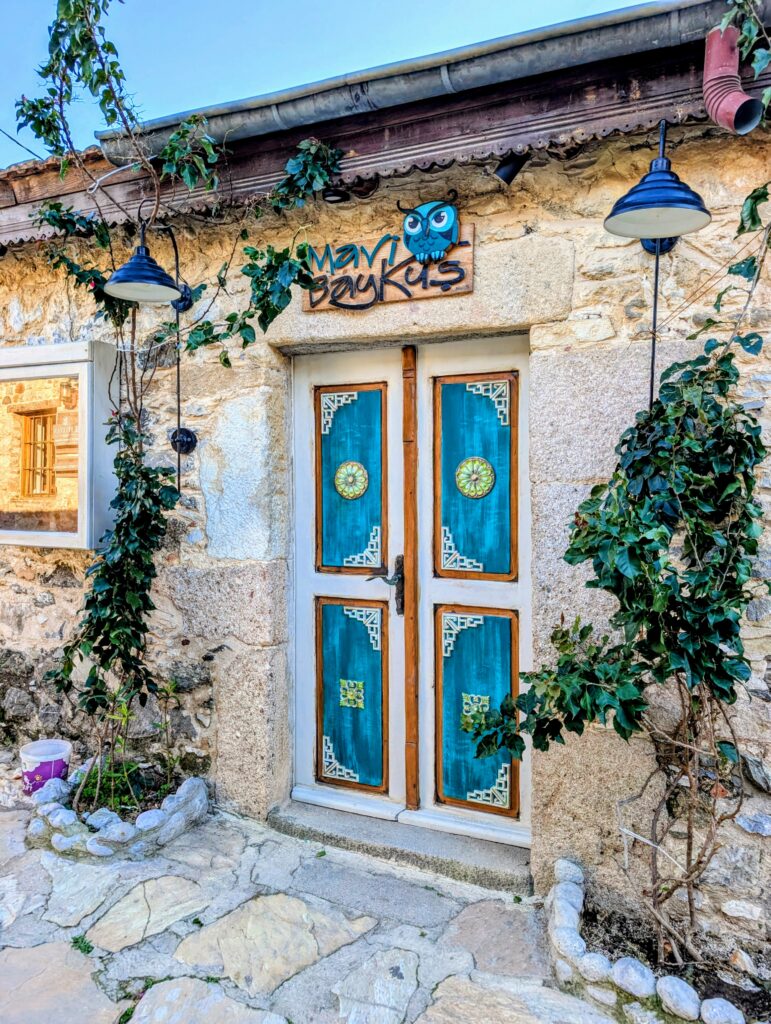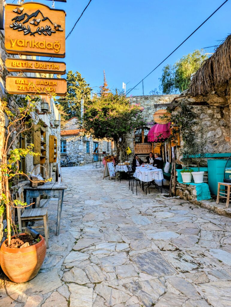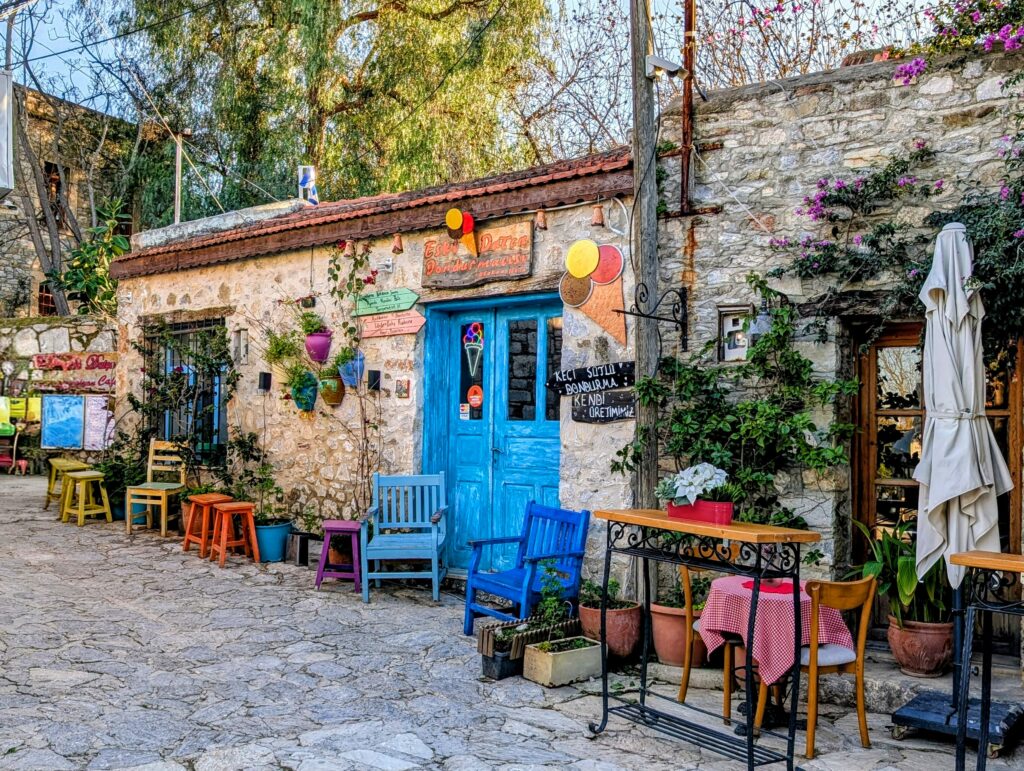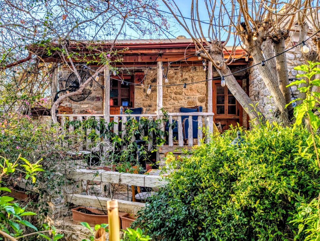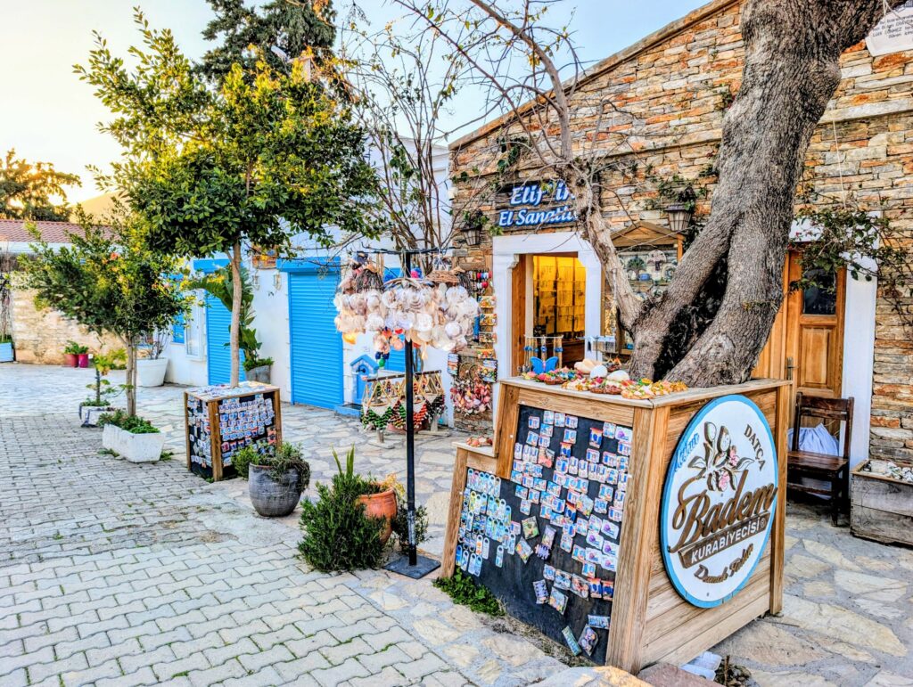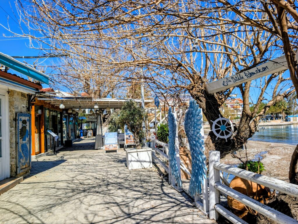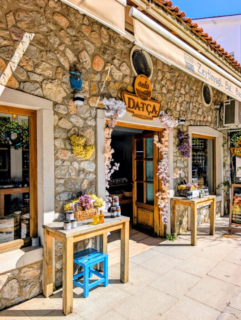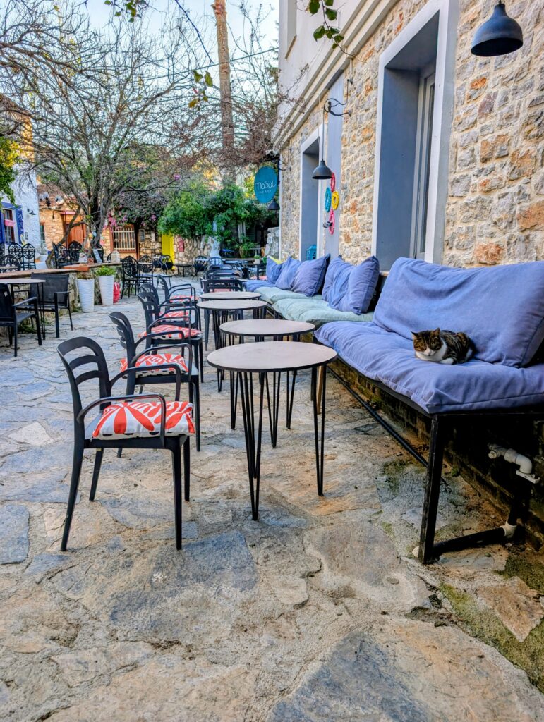Et pour terminer la journée, nous partons découvrir le vieux Datça (Eski Datça) qui est le cœur historique et pittoresque de la ville. Nous découvrons ses ruelles étroites, ses maisons traditionnelles en pierre et ses bougainvilliers. Ce quartier authentique, situé à environ 1 kilomètre du port moderne, propose des boutiques d’artisanat, des cafés et une atmosphère paisible remplie de chiens et de chats. Autre chose à préciser sur les Turcs, en tout cas dans cette région, ils sont très gentils avec les animaux. Ils les nourrissent et les laissent s’installer partout, même sur les coussins des restaurants ou dans les hôtels. On adore !