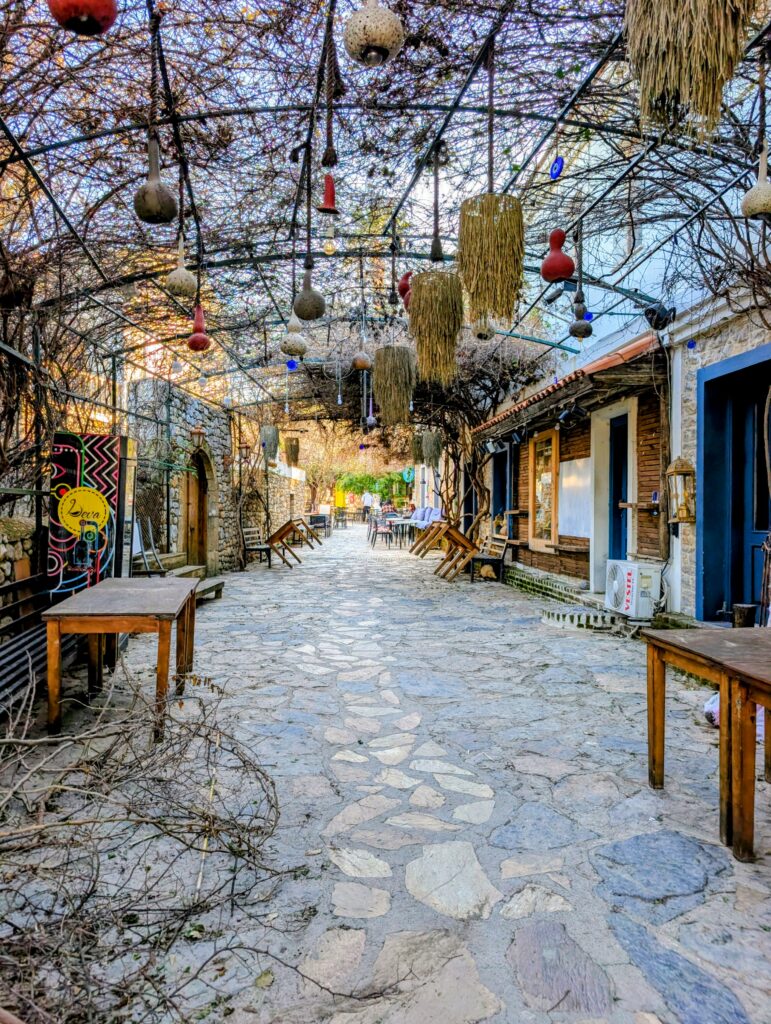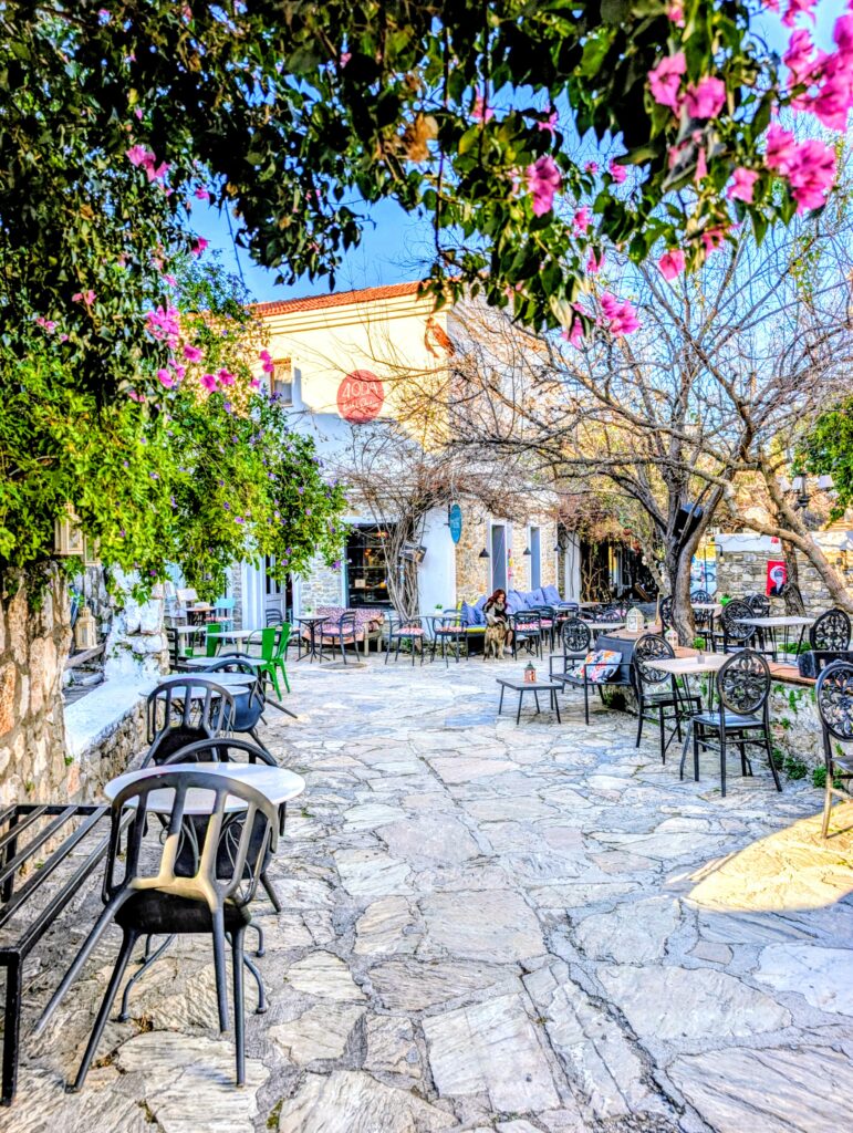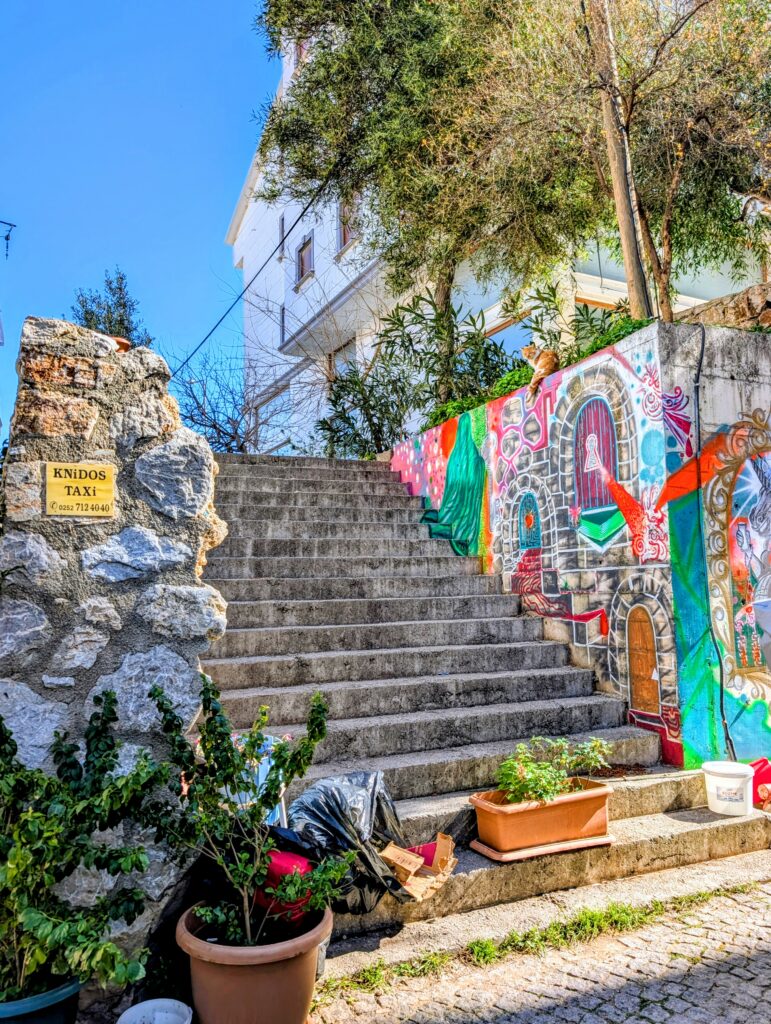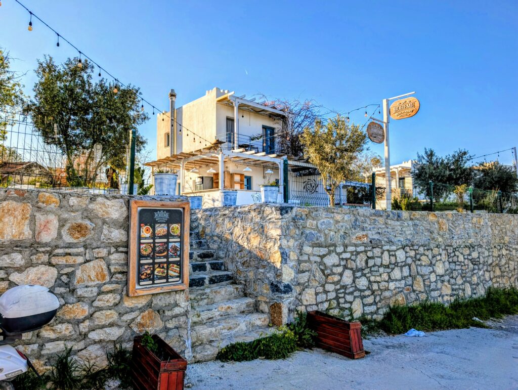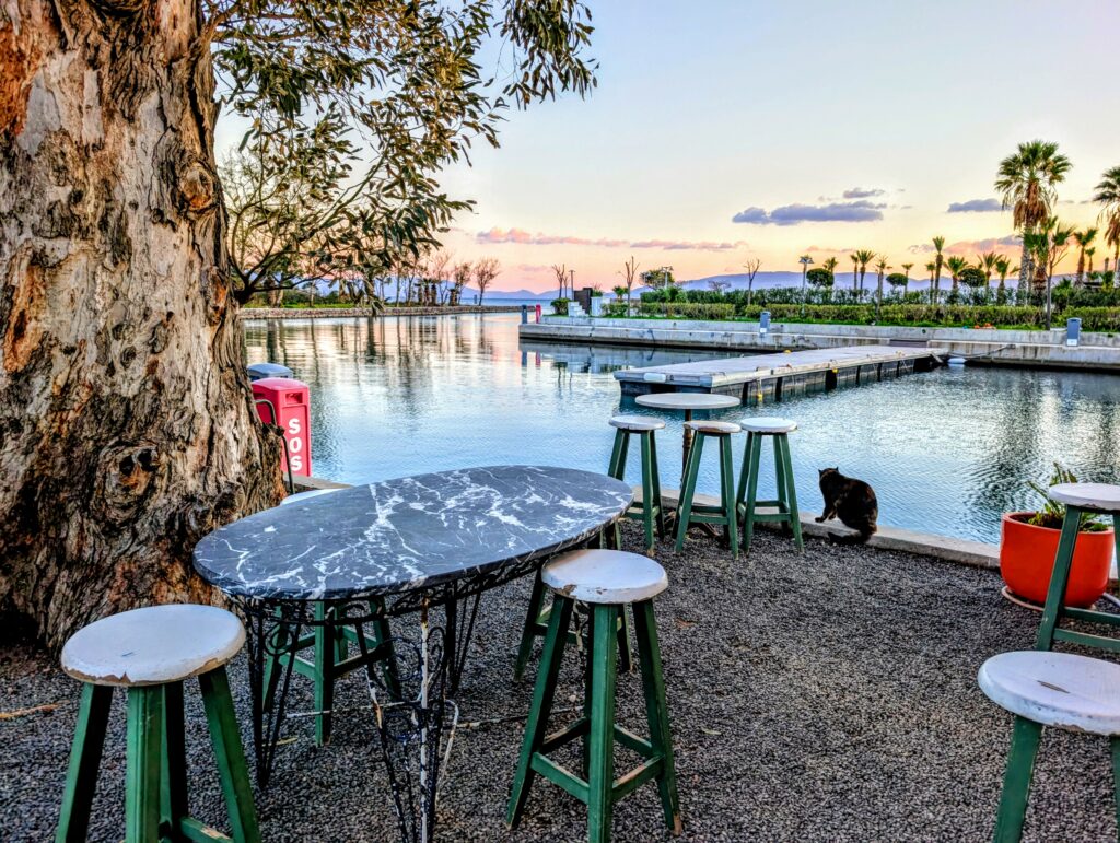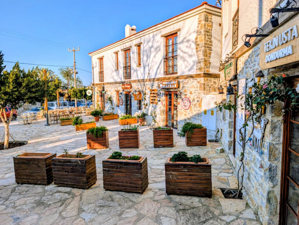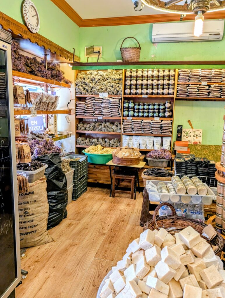 Et pour terminer la journée, nous partons découvrir le vieux Datça (Eski Datça) qui est le cœur historique et pittoresque de la ville. Nous découvrons ses ruelles étroites, ses maisons traditionnelles en pierre et ses bougainvilliers. Ce quartier authentique, situé à environ 1 kilomètre du port moderne, propose des boutiques d’artisanat, des cafés et une atmosphère paisible remplie de chiens et de chats. Autre chose à préciser sur les Turcs, en tout cas dans cette région, ils sont très gentils avec les animaux. Ils les nourrissent et les laissent s’installer partout, même sur les coussins des restaurants ou dans les hôtels. On adore !