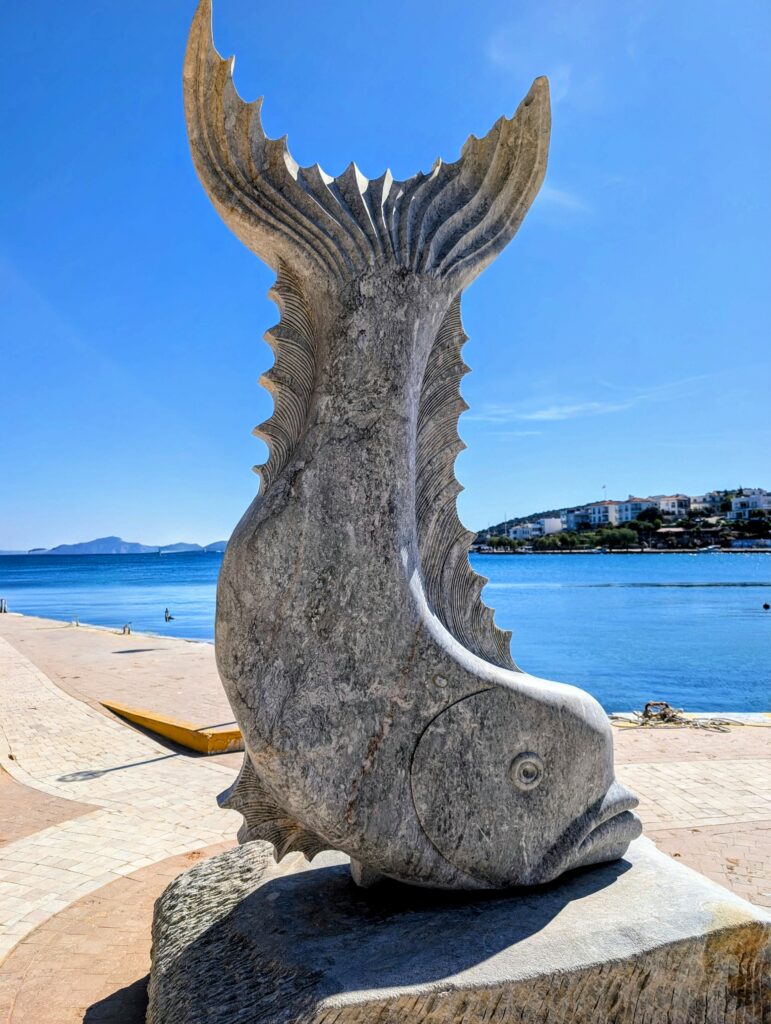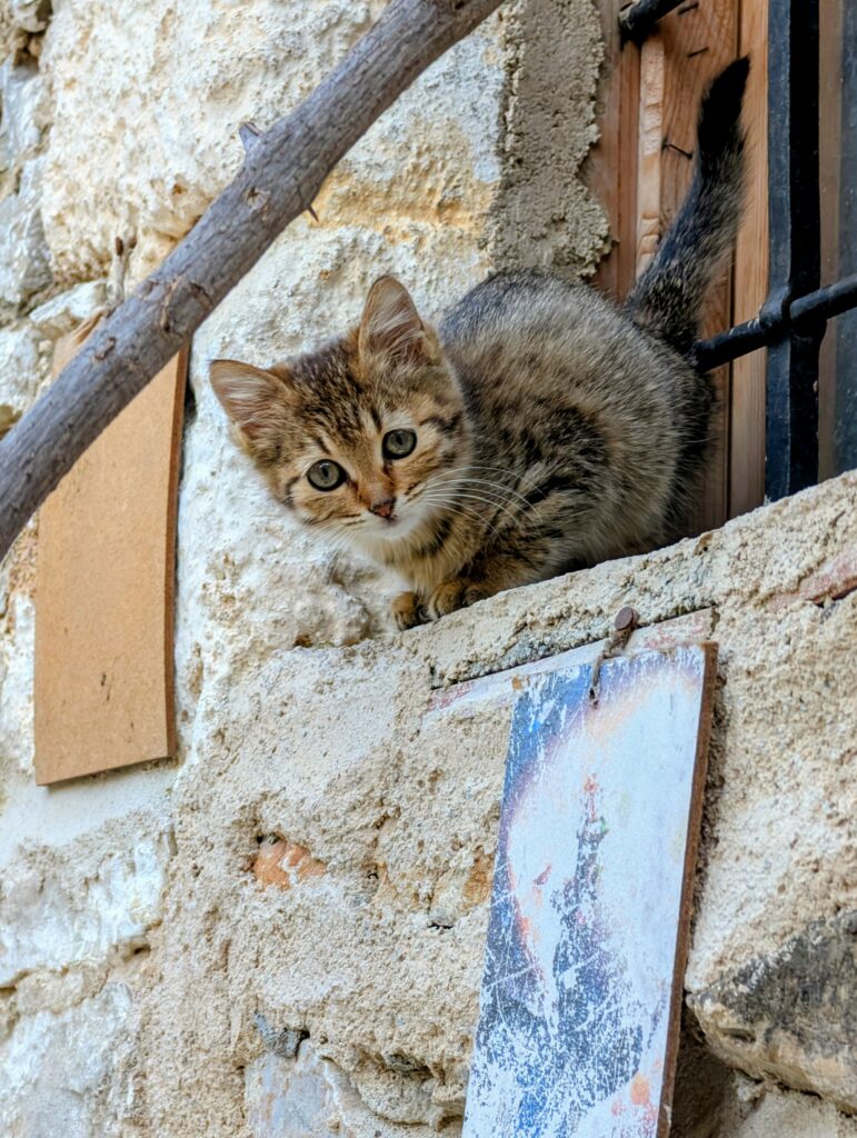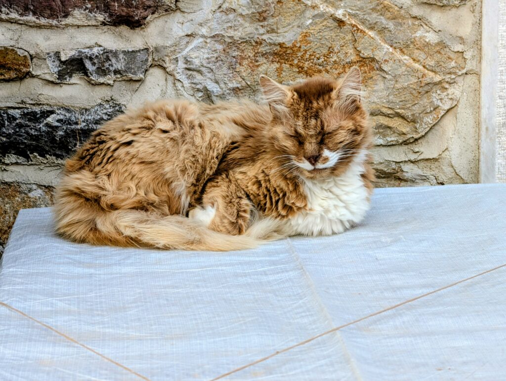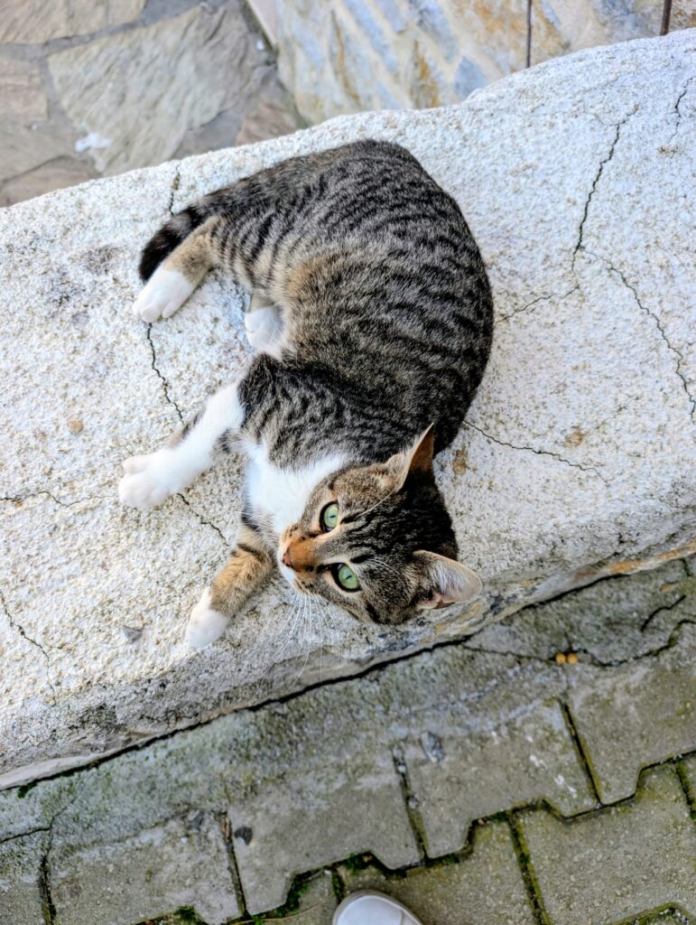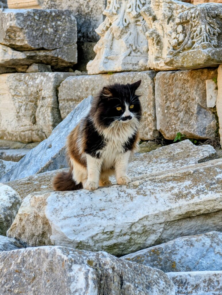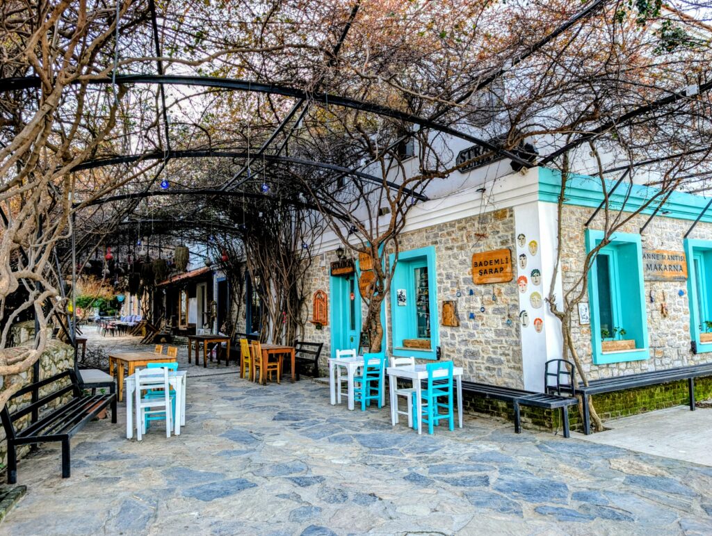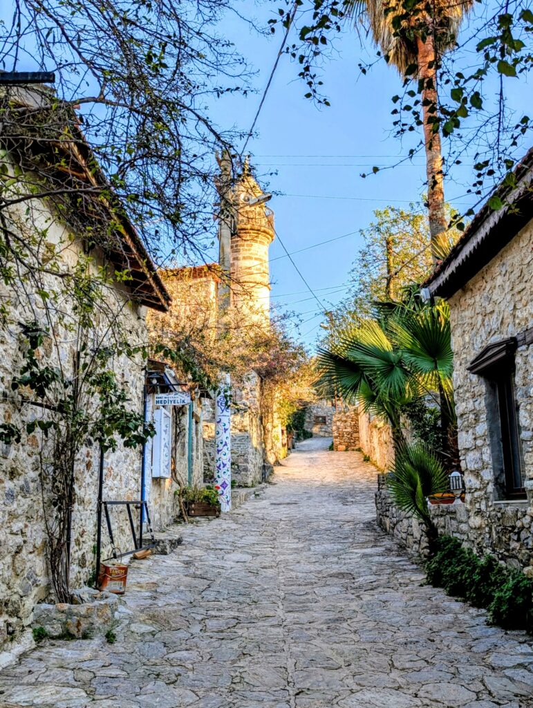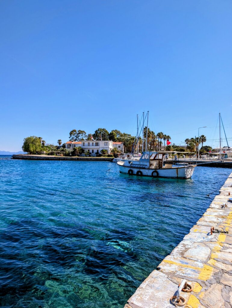 Et pour terminer la journée, nous partons découvrir le vieux Datça (Eski Datça) qui est le cœur historique et pittoresque de la ville. Nous découvrons ses ruelles étroites, ses maisons traditionnelles en pierre et ses bougainvilliers. Ce quartier authentique, situé à environ 1 kilomètre du port moderne, propose des boutiques d’artisanat, des cafés et une atmosphère paisible remplie de chiens et de chats. Autre chose à préciser sur les Turcs, en tout cas dans cette région, ils sont très gentils avec les animaux. Ils les nourrissent et les laissent s’installer partout, même sur les coussins des restaurants ou dans les hôtels. On adore !