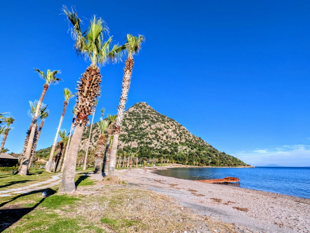 En fin de journée, nous reprenons la route et nous nous arrêtons dormir près de la ville d’Akbük. Après ces quelques jours d’intenses réparations dans Gru et ces 2 journées bien chargées en kilomètres, nous nous offrons 3 nuits dans un bel hôtel à Bodrum pour décompresser. Ca va nous faire du bien de ne rien faire …