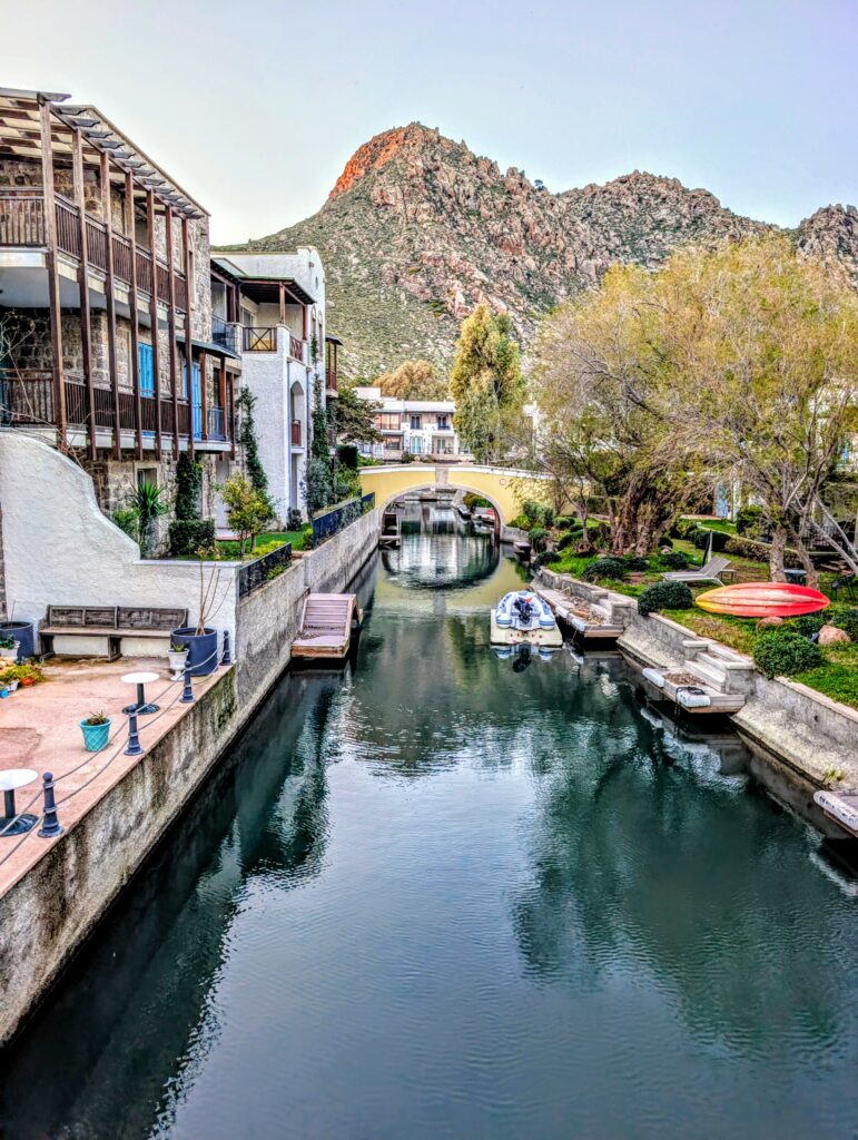 Le plan C nous fait passer à travers un complexe hôtelier, sur des routes bien défoncées et surtout très pentues. Bref, on arrive finalement à notre hôtel mais tendus comme des arbalètes. Heureusement, le complexe est magnifique et on est presque seuls. Le maître-mot de ces 3 prochains jours : farniente.