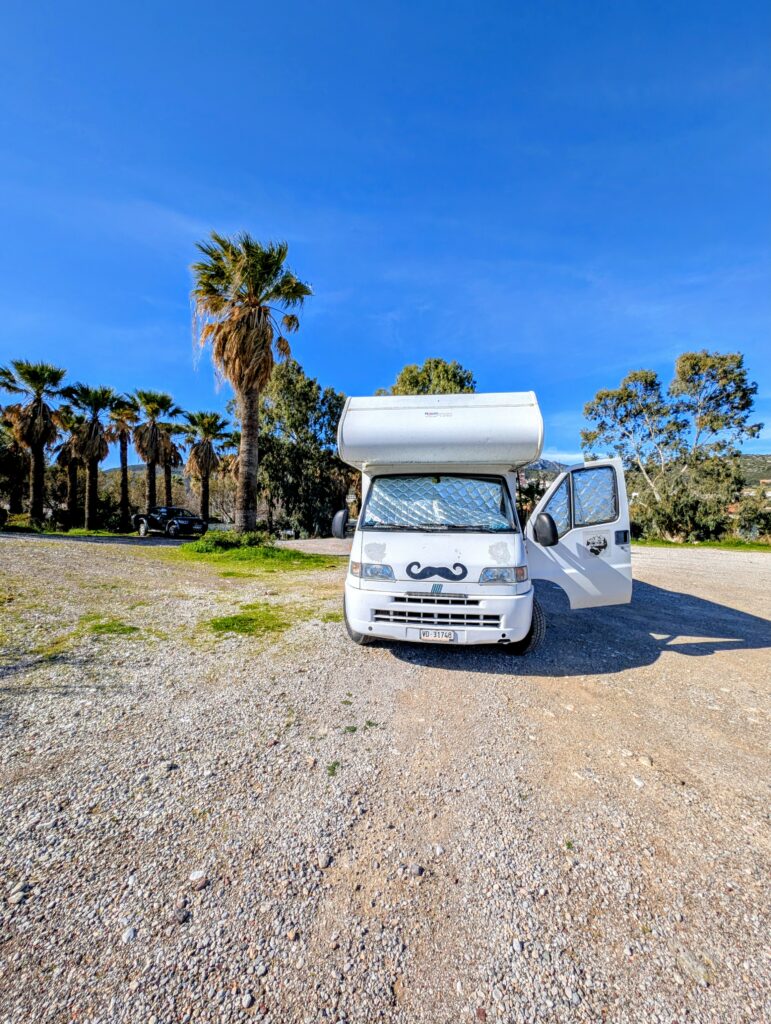 Ce soir, nous changeons de spot pour dormir et trouvons un coin au bord d’une plage un peu en dehors de la ville. Espérons que ça sera plus calme. Bonne nuit …