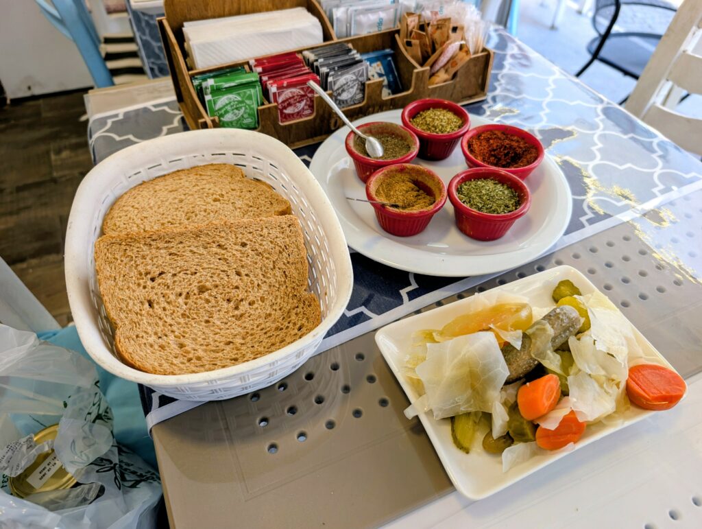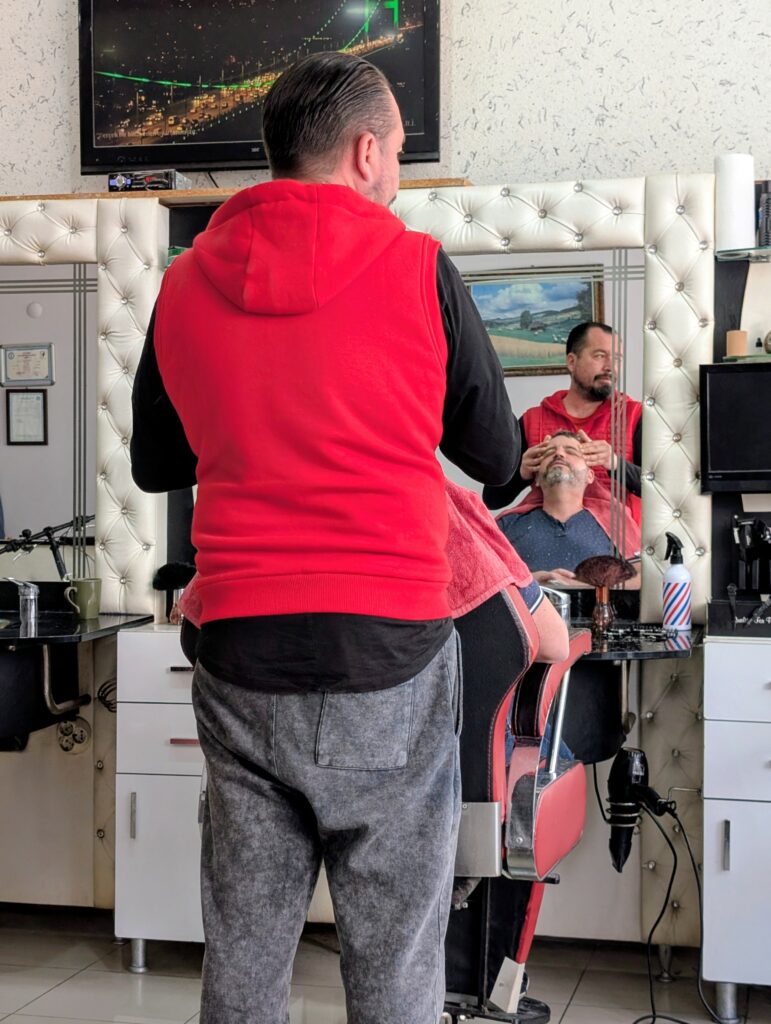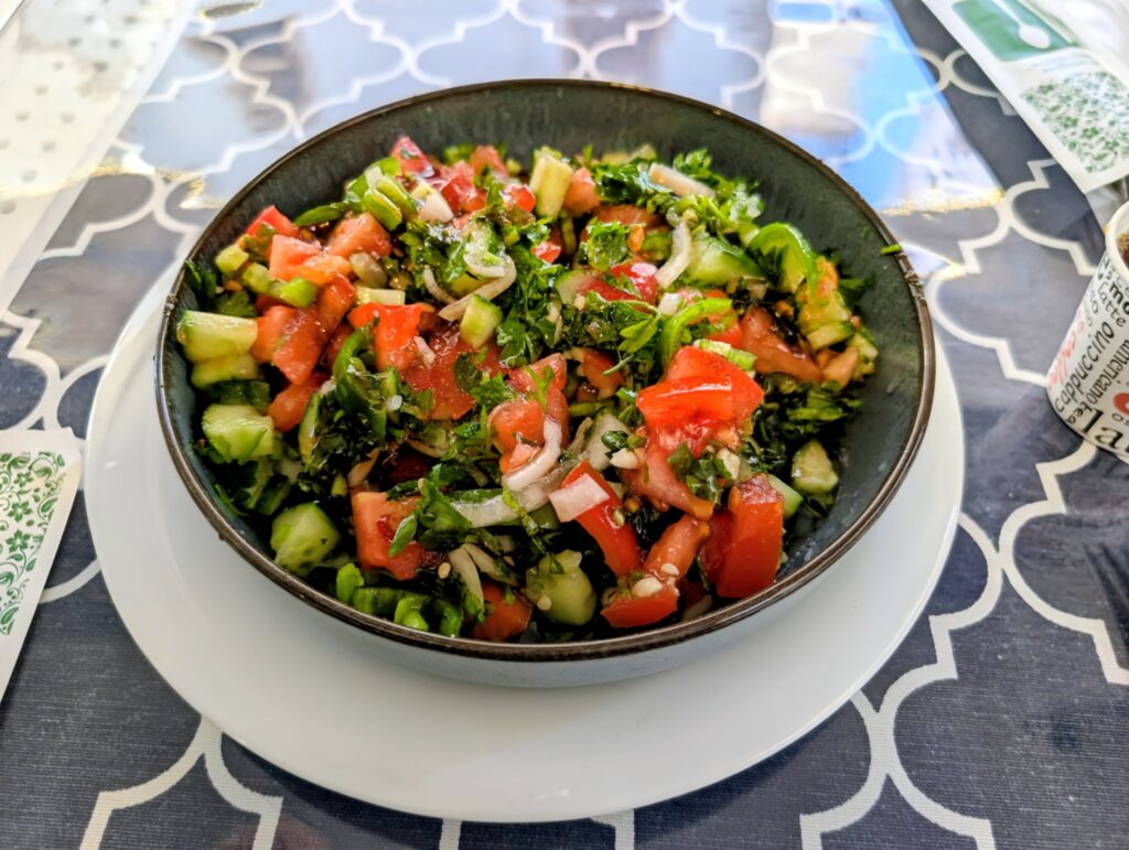 Après un petit détour par le barbier pour couper cheveux et barbe du Marcelo, nous faisons quelques achats de produits locaux, comme les amandes de la région vendues sous toutes ses formes. Puis, direction un bon petit restaurant qui sert de la cuisine traditionnelle. Enfin ! Et nous ne sommes pas déçus, le proprio est super sympa et nous sert une cuisine maison très savoureuse.