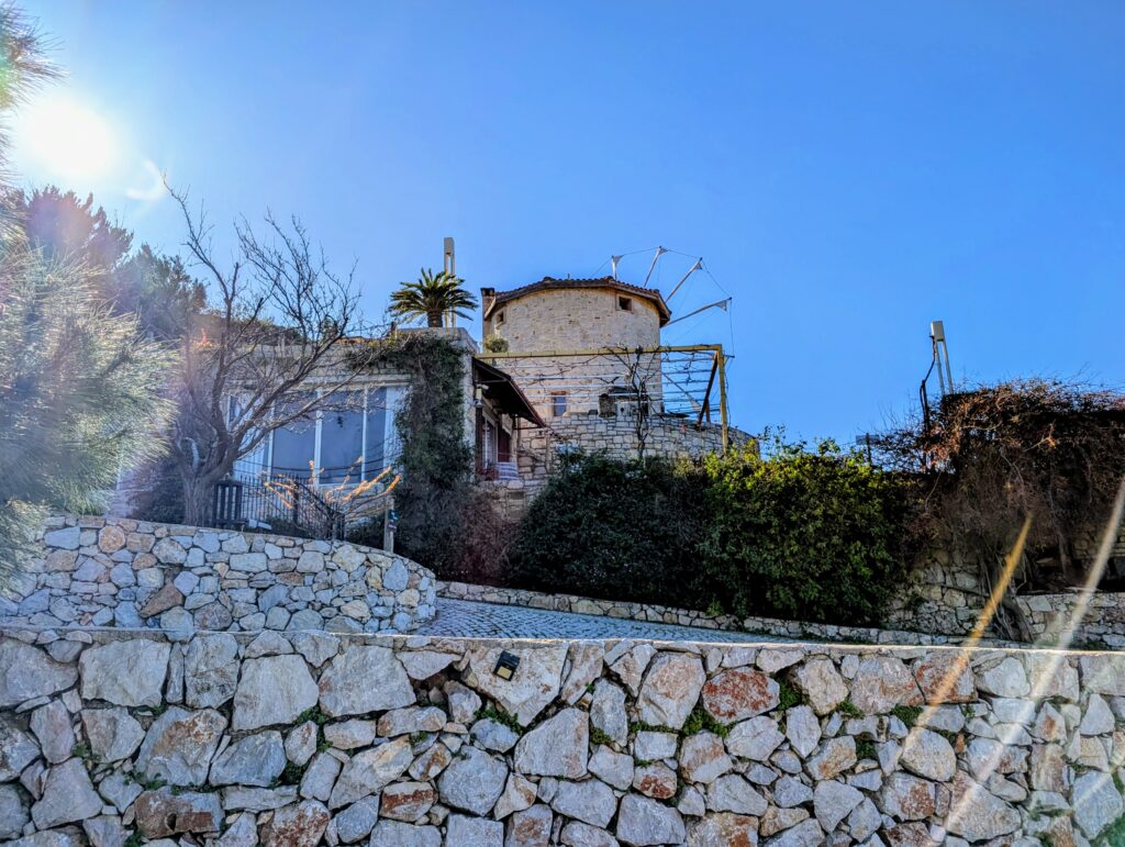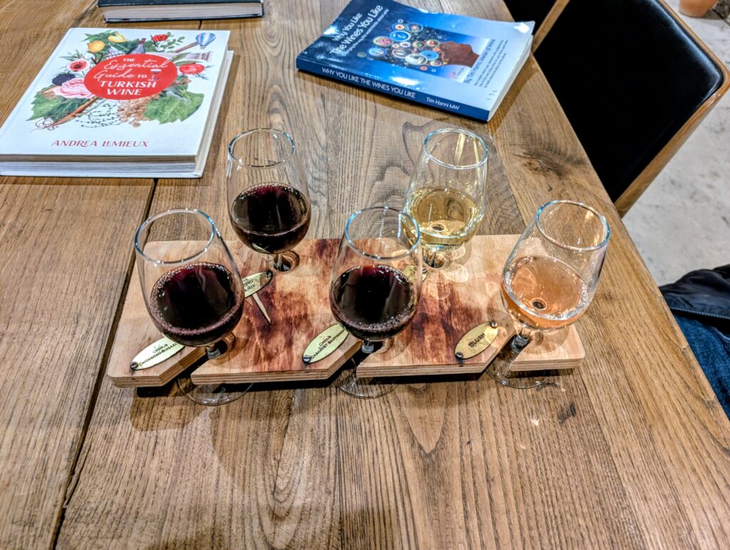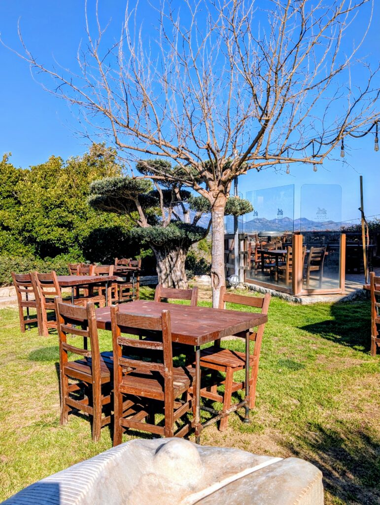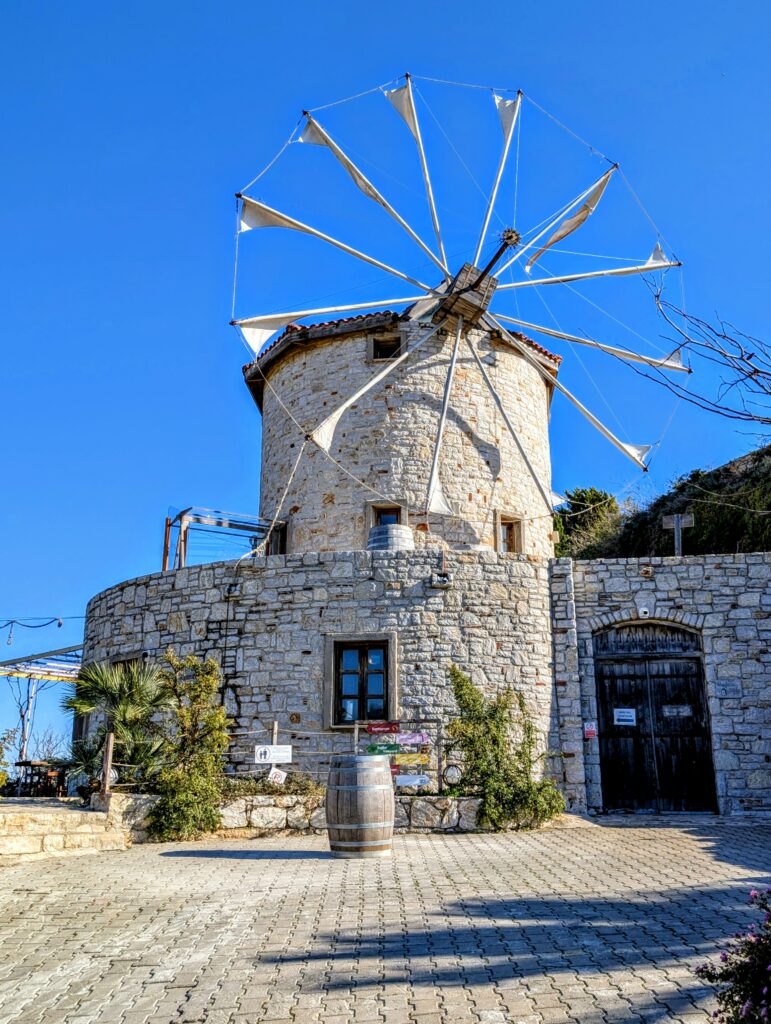 Nous partons ensuite au Datça Viticulture and Oenology, domaine qui propose des dégustations de vins locaux et qui se situe dans un magnifique moulin dont les vignes surplombent la mer. Comme toujours, nous sommes bien accueillis et dégustons 2 blancs, 3 rouges et un blanc semi-doux grâce à l’ajout de miel. Une jolie découverte des vins du terroir égéen et de ce bel endroit.